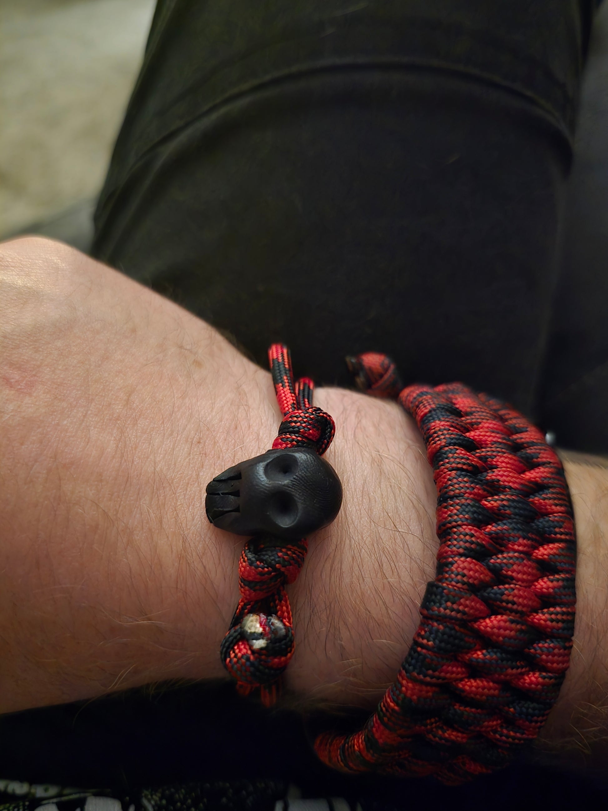 Forged in the ash of a warlock’s final breath, this relic pulses with infernal memory. Red-black threads channel forbidden flame through the skull bead’s hollow gaze.
