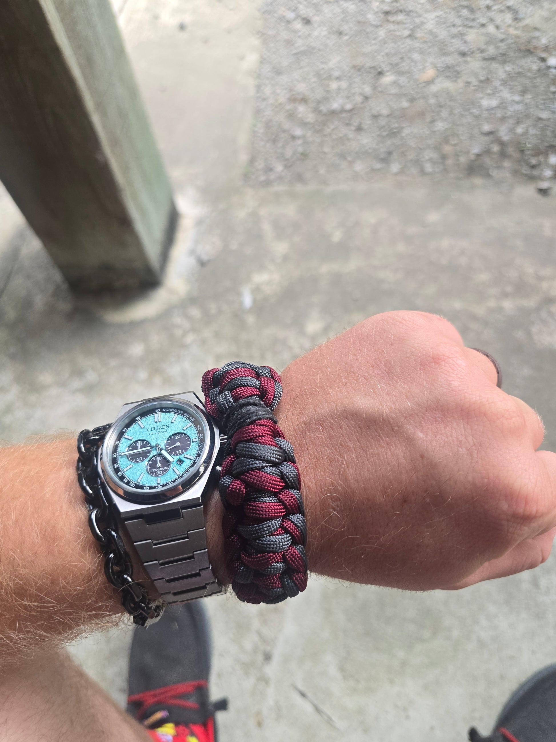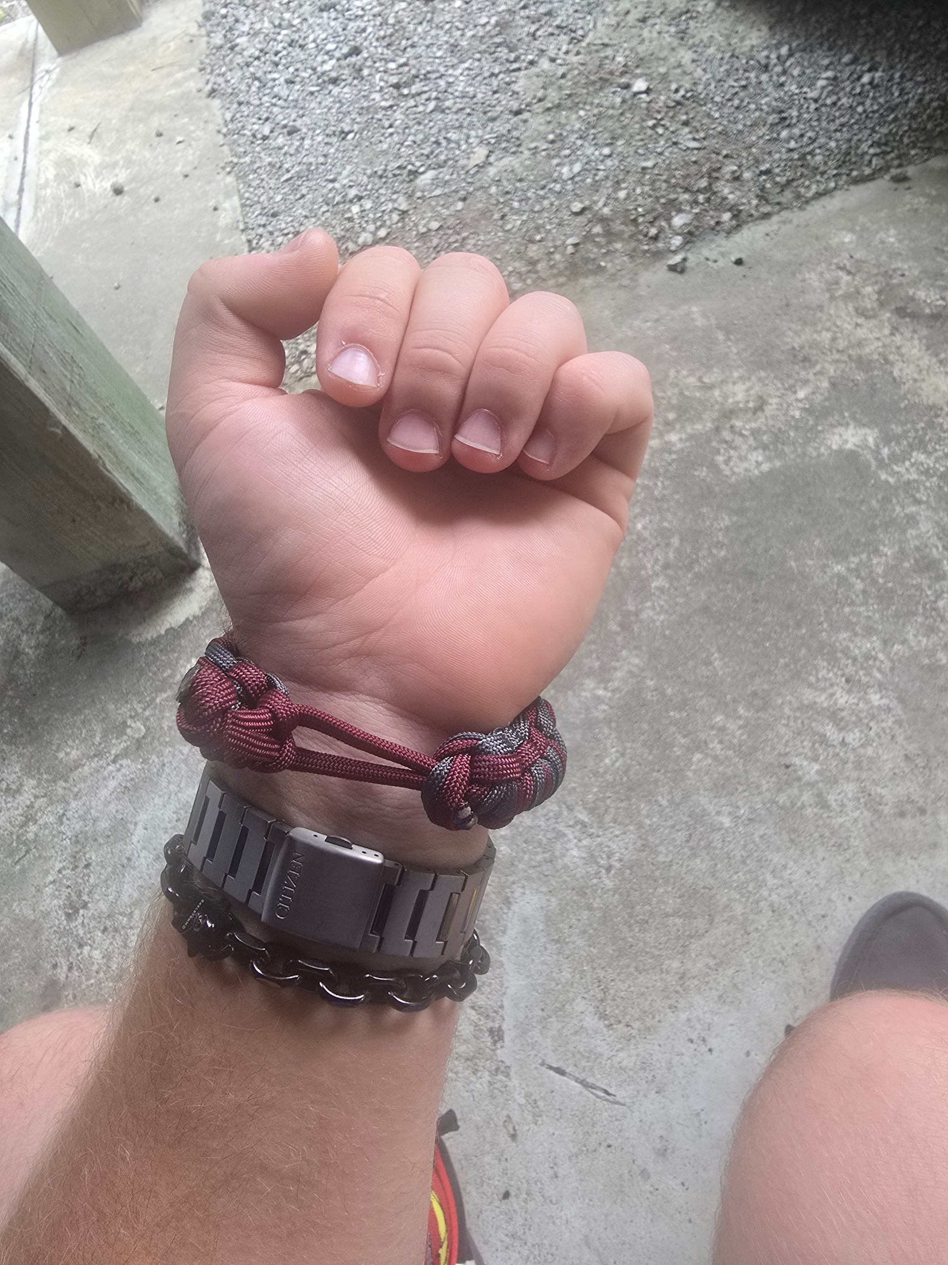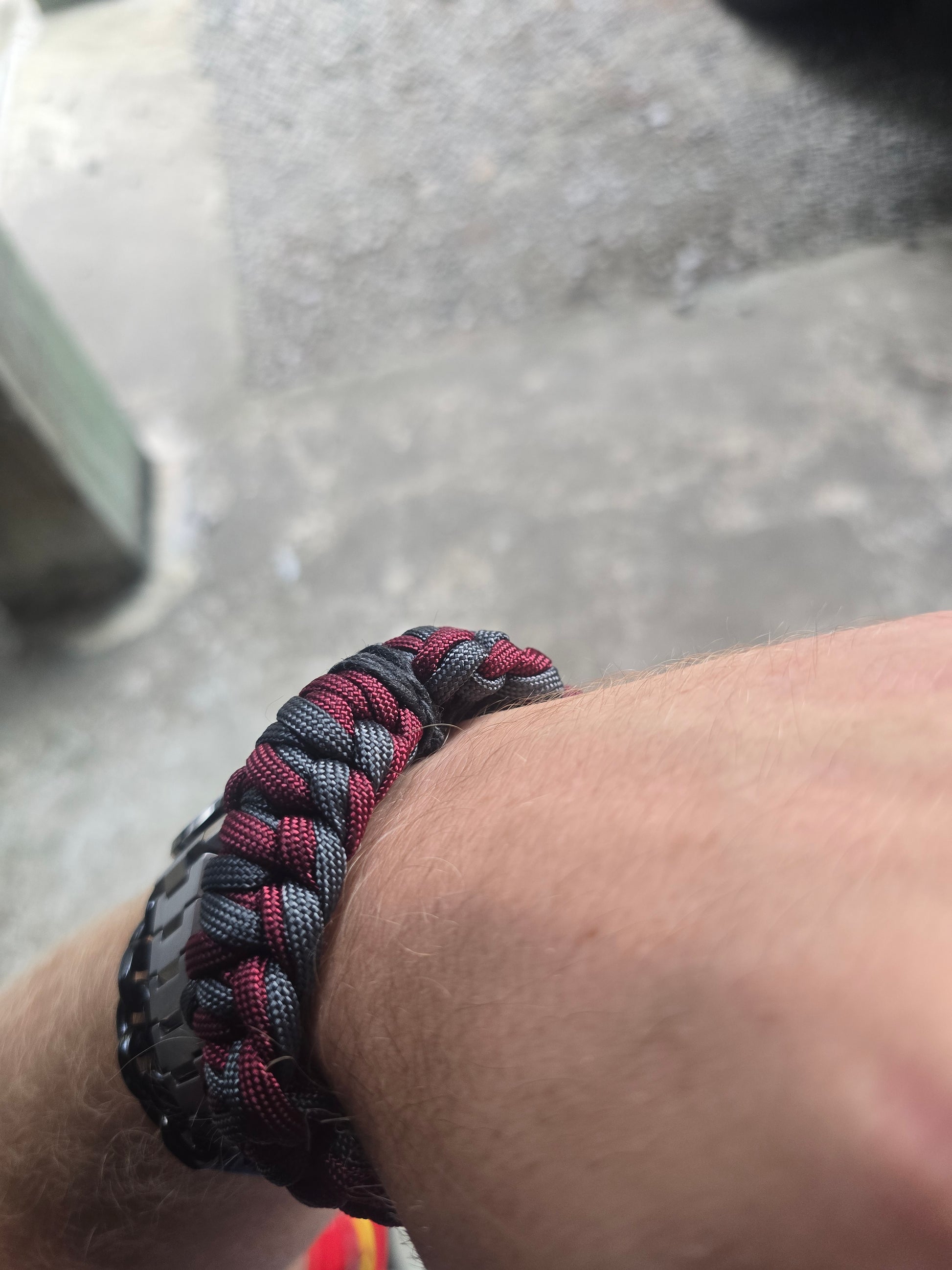 - USA-made 550 paracord in Stealth Grey & Burgundy
